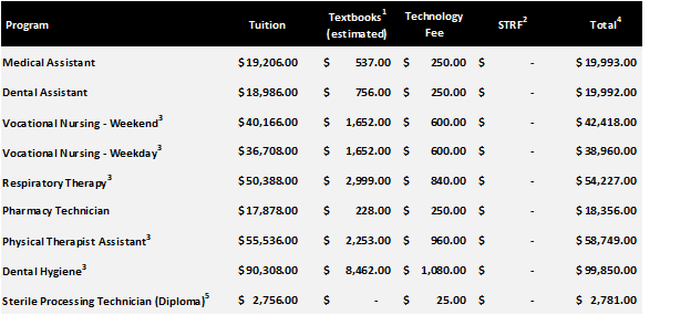 Tuition and direct expenses vary by program and are listed above. The indirect expenses below are based off a 9-month academic year and may be prorated when academic years are shorter or longer. Indirect expenses reflect an average cost of the components that fall within the category. For additional cost of attendance budgets please contact the Financial Aid office.
