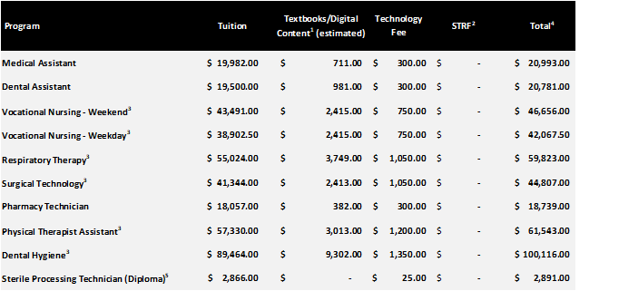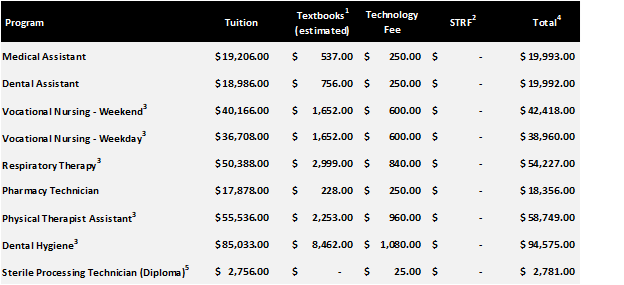 Tuition and direct expenses vary by program and are listed above. The indirect expenses below are based off a monthly average and may be prorated when academic years are shorter or longer. Indirect expenses reflect an average cost of the components that fall within the category. For additional cost of attendance budgets please contact the Financial Aid office.
